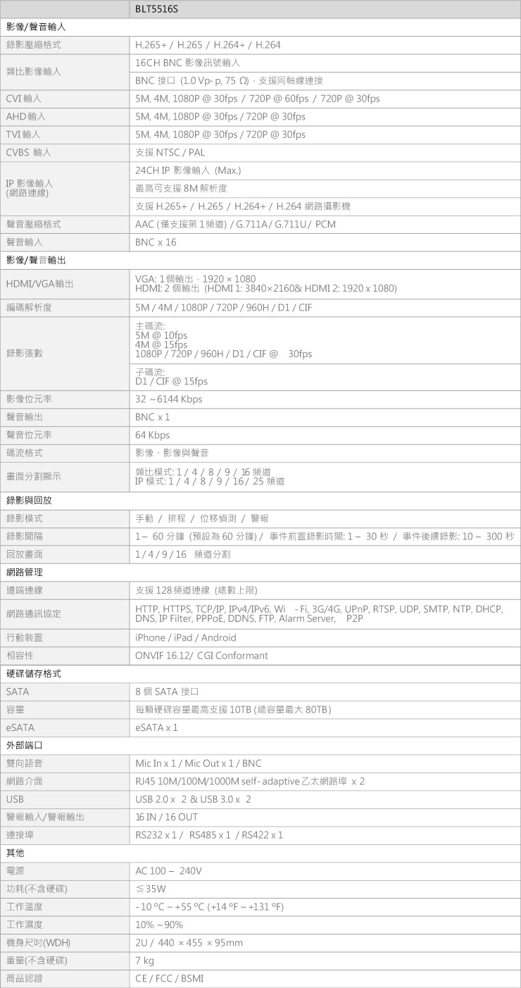 - 最高可支援 24 頻道 8M 網路攝影機輸入