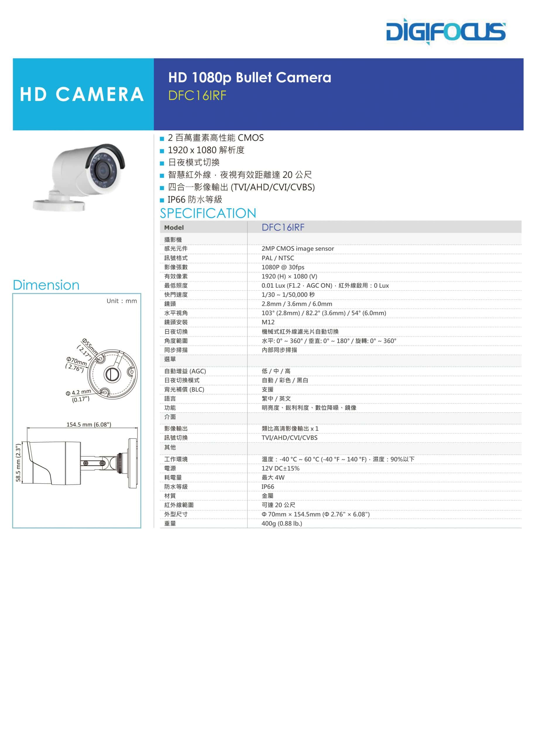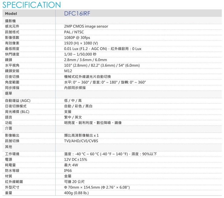 四合一影像輸出(TVI/AHD/CVI/CVBS)