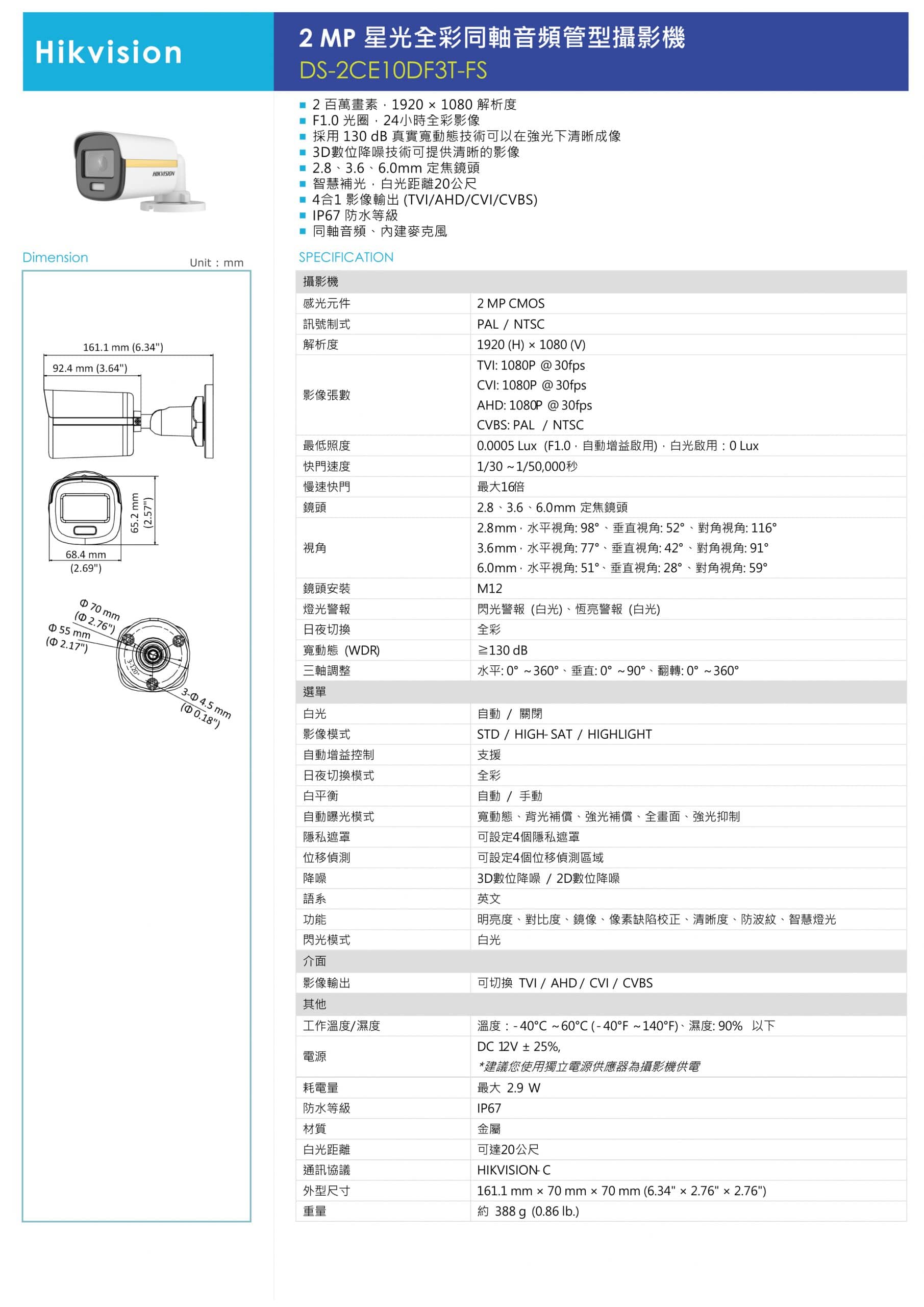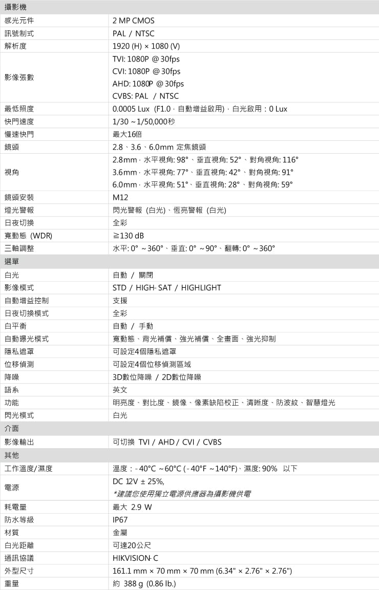 • 2.8、3.6、6.0mm 定焦鏡頭